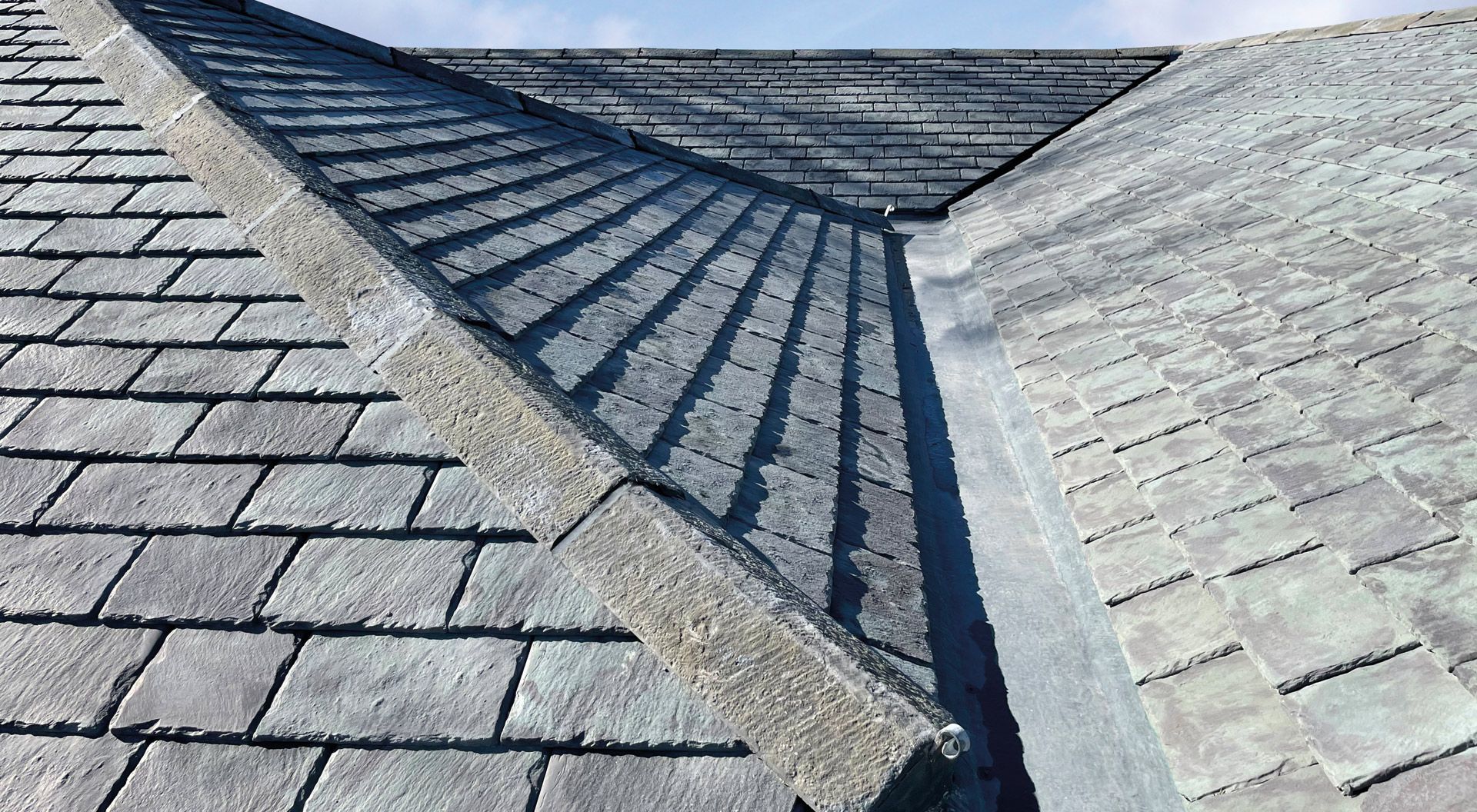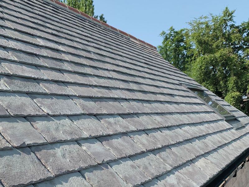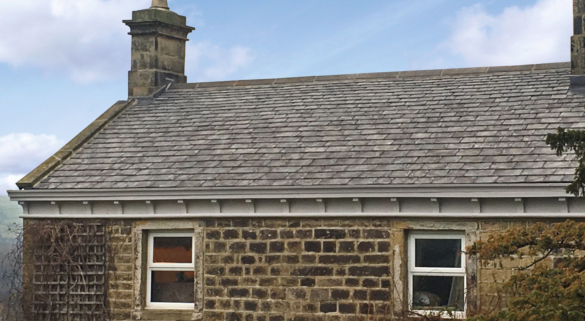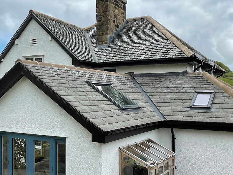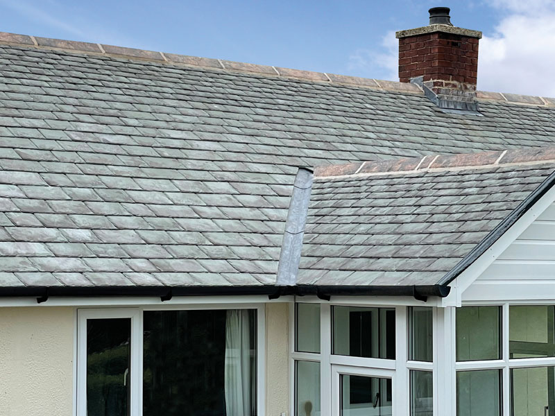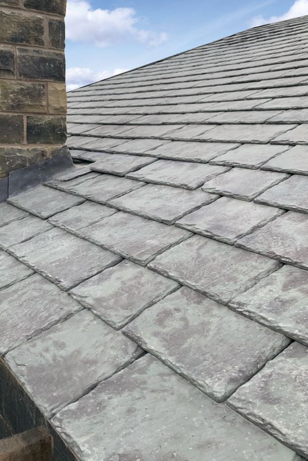 Left – Greys Artslate GRC Slate Right – Aggregate Concrete Slate, weathers and shows aggregate over time